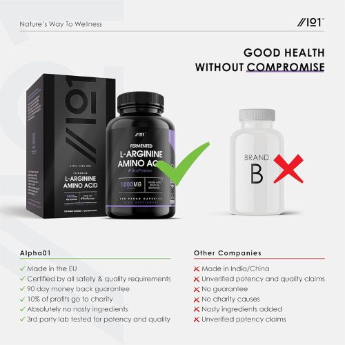 Alpha One L-Arginine Amino Acid (120 Capsules) – Nitric Oxide Booster for Energy, Blood Flow & Performance