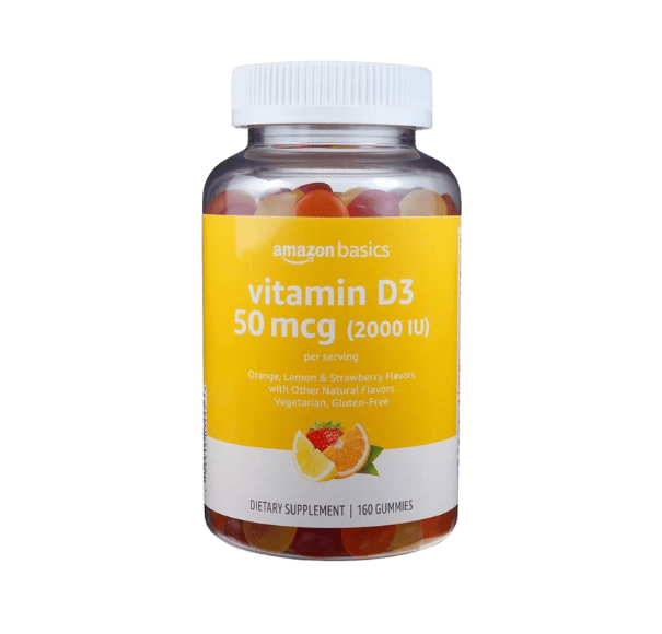 Sunshine in a bottle! Amazon Basics Vitamin D3 Gummies deliver 2000 IU of essential vitamin D in delicious orange, lemon, and strawberry flavors – making it easy to support your immunity, bone health, and mood every day.