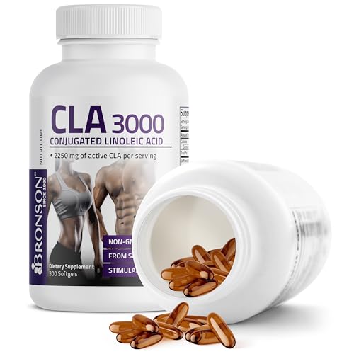 Bronson CLA 3000 Extra High Potency Supports Healthy Weight Management Lean Muscle Mass Non-Stimulating Conjugated Linoleic Acid 120 Softgels