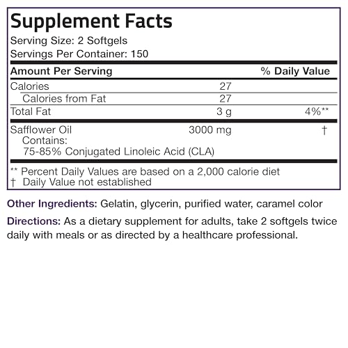 - Extra High Potency: 2250 mg of active CLA per serving (2 softgels). Naturally Supports Healthy Weight Management* – Non-Stimulating Conjugated Linoleic Acid. Non GMO 100% Safflower.