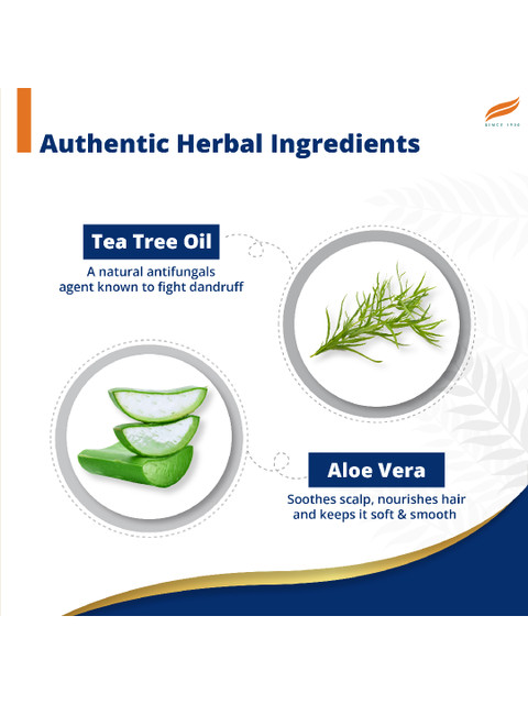 | Ingredients | Tea Tree Oil: Tea Tree Oil is a natural anti-fungal agent known to fight dandruff.Aloe Vera: Aloe Vera helps soften hair, leaving a soothing effect on the scalp.The natural proteins of Soy and Wheat: The natural proteins of Soy and Wheat help strengthen hair and reduce hair breakage, helping in reduce hair damage, smoothening and nourishing hair. |