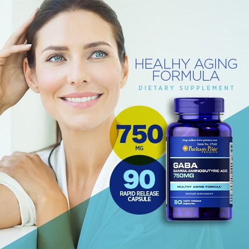 Puritans Pride GABA Gamma Aminobutyric Acid 750 Mg Capsules, 90 Count