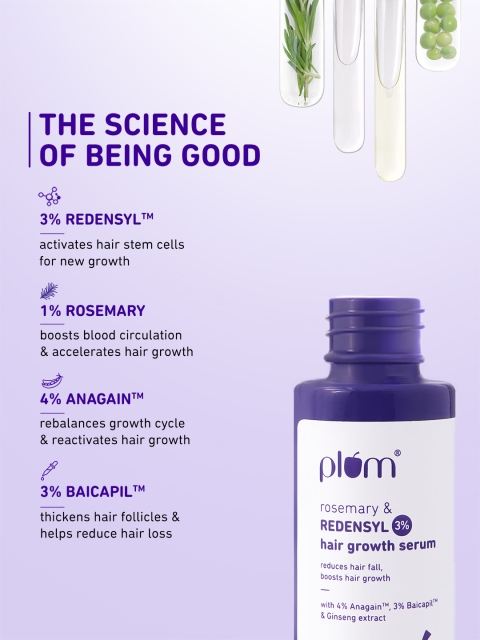 Plum Hair Growth Serum | 3% Redensyl + 4% Anagain + 3% Baicapil | Rosemary & Ginseng Extract | Anti-Hair Fall & Hair Density Booster | For Men & Women, Non-Greasy Formula | 30ml