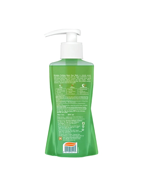 | Benefits | Provides pimple free healthy skin.Eliminates pimples, and clears your skin of impurities.Himalaya's Purifying Neem Face Wash is a soap-free formulation that cleans impurities and helps clear pimples. A natural blend of Neem and Turmeric are known for their antimicrobial properties, to help combat and prevent the recurrence of pimples over time. |