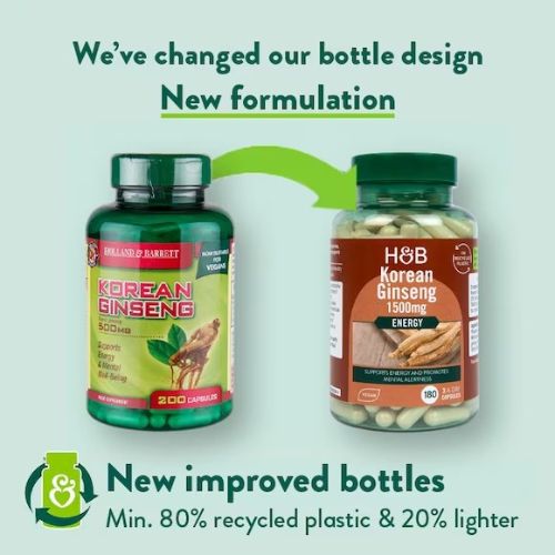 Elevate your natural energy and endurance with Holland & Barrett Korean Ginseng 1500mg, a high-potency herbal supplement delivering 1500mg of premium Panax ginseng root extract per capsule. This traditional adaptogen helps combat fatigue, enhance mental clarity, and support physical performance—perfect for active lifestyles and demanding days.