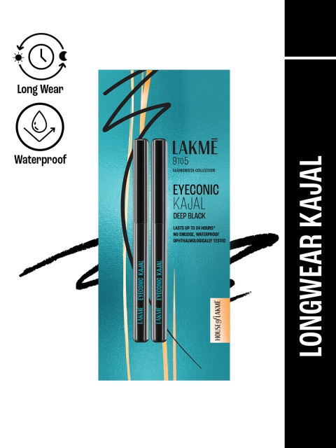 Lakme 9 to 5 Set of 2 Eyeconic Kajal, Lasts upto 24hrs – Deep Black, 0.35g Each