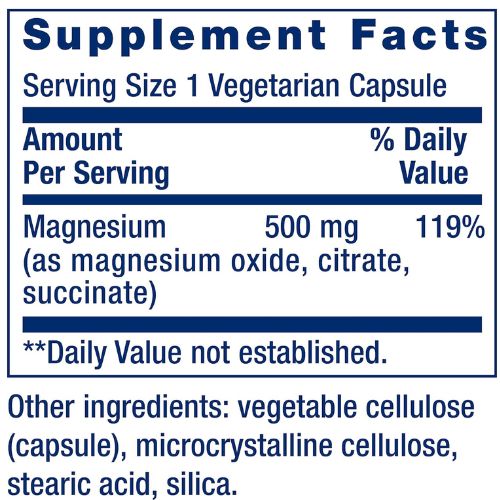 Life Extension Magnesium Caps 500mg, 100 Veg Capsules – Broad Spectrum – 3 Mags in 1 Supplement: Oxide, Citrate, Succinate – Vegetarian