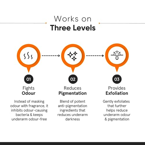 - Gentle Exfoliation – Combination of AHAs & BHA provides gentle multilevel exfoliation and promotes natural cell turnover. It helps reduces dark spots & acheive even toned underarms, revealing smoother and revitalised skin
