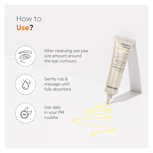 Minimalist Vitamin K + Retinal 01% Under Eye Cream | Reduces Dark Circles, Wrinkles & Fine Lines | With Caffeine for Puffiness | For Women & Men | 14 gm