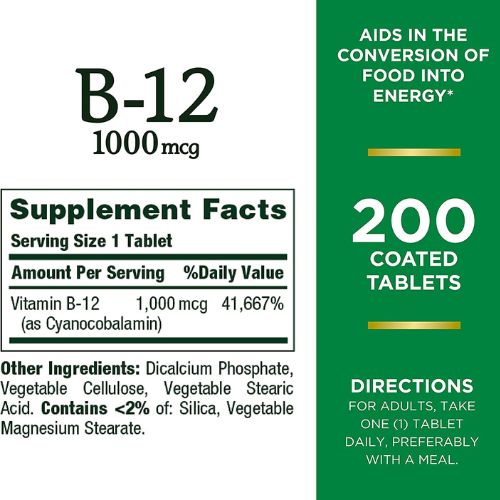 Nature’s Bounty Vitamin B12 1000mcg (200 Tablets) – High-Potency Energy & Nervous System Support