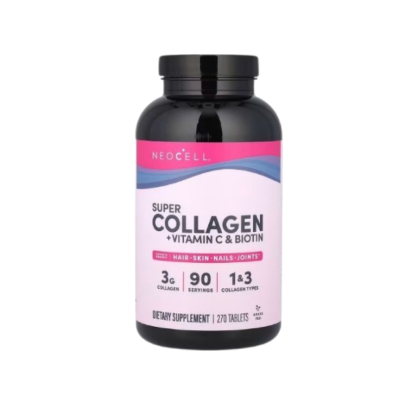 NeoCell Super Collagen Vitamin C & Biotin Tablets is a supplement that provides the body with nutrients necessary for collagen production. These tablets are formulated with hydrolyzed collagen type 1&3, vitamin C, and biotin to support healthy collagen formation for radiant skin, strong nails, and lustrous hair. With 18 amino acids, this formula is designed to help replenish your body’s natural collagen supply. Vitamin C aids in collagen production while biotin promotes keratin synthesis for healthy hair and nails. Take these tablets daily for the best results.