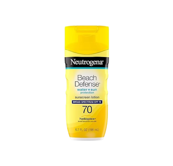Neutrogena Sunscreen Lotion Beach Defense SPF 70, 6.7 fl oz, Face and Body Sunscreen, Oil Free, Fast Absorbing, Oxybenzone Free Sun Care