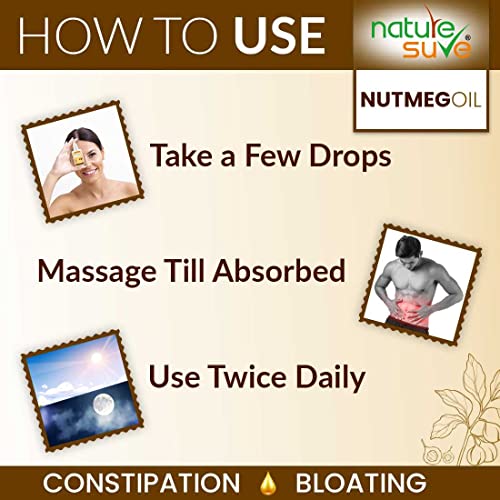 - Finely crafted massage oil made with premium ingredients, Nature Sure Nutmeg Oil is naturally effective in providing relief from bloating, flatulence, and constipation