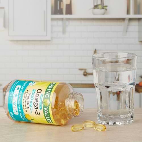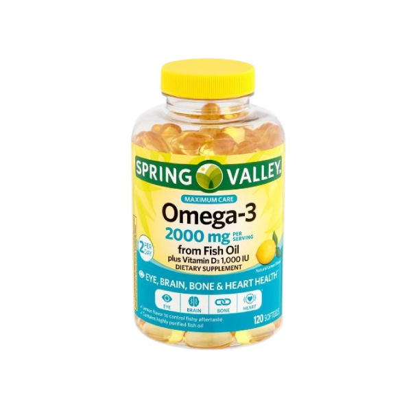 Spring Valley Omega-3 from Fish Oil 2000mg (120 Softgels)—a popular supplement for heart, brain, and joint health.