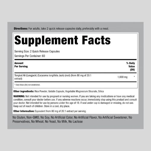 Piping Rock Tongkat Ali 1600mg | 120 Capsules | Longjack Extract for Men | Non-GMO, Gluten Free Supplement
