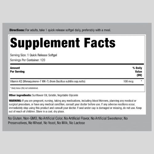 Piping Rock Vitamin K2 MK7 | 100 mcg | 120 Softgels | Non-GMO, Gluten Free Supplement