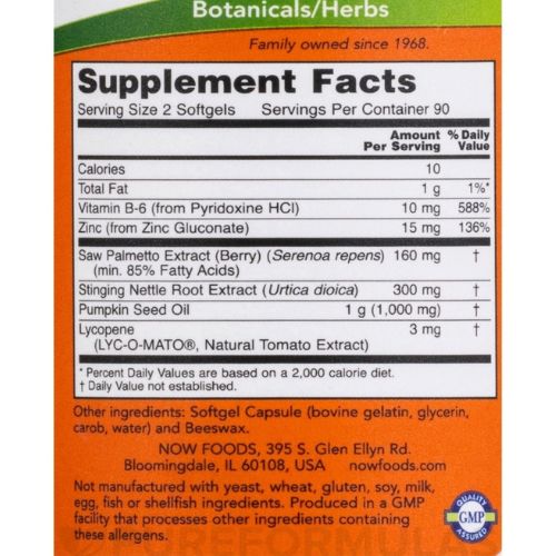 NOW Supplements, Prostate Support, Prostate Support, Prostate Support, with Standardized Saw Palmetto, Stinging Nettle & Lycopene, 90 Softgels