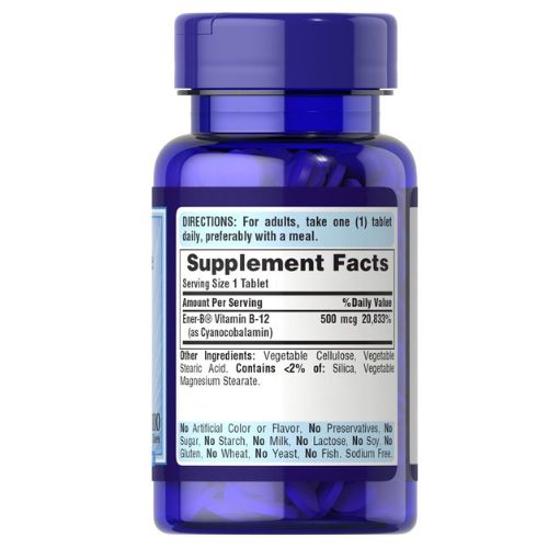 Puritanโs Pride Vitamin B-12 500mcg, Dietary Supplement For Energy Metabolism Support, 100 Tablets, 100 Day Supply