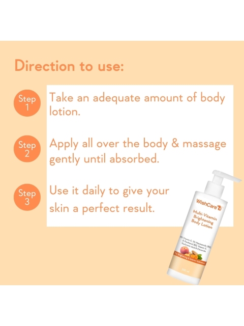 | How-to-Apply | Massage it all over the body until absorbedCan be applied both day and night timeFor daytime, follow with wishcare spf50 sunscreen body lotion on exposed body parts |