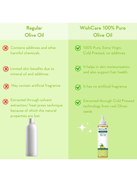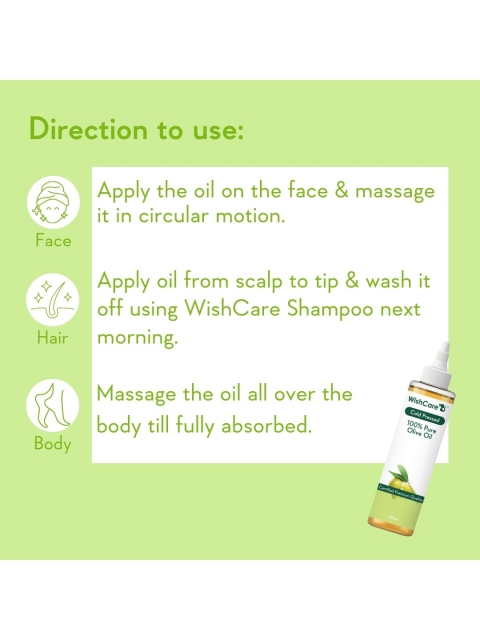| How-to-Apply | Blend 4-5 drops of any Essential Oil in a teaspoon of Wishcare Olive Carrier Oil and apply on the skin or hairWishcare Olive Carrier Oil can be massaged directly into the skin and hair |